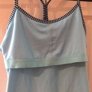 Light blue with built in sports bra support! Fitted and sweat wicking, soft athletic material. Used, but in great condition! No damage! Tagless, but size M (is fitted though so feels tight).