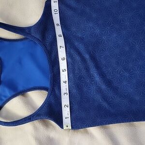 Lululemon racerback tank top. No material or size tags. Chest measurements: 11 1/2 inches. Length: 15 inches. U shape hemline.