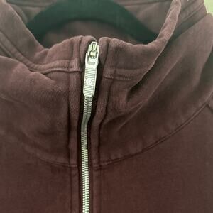 Great preloved condition. Some slight wash wear, but no pilling, stains, rips, tears or holes. Still a nice vibrant burgundy/plum shade with beautiful embroidered Lululemon logo on the back collar.