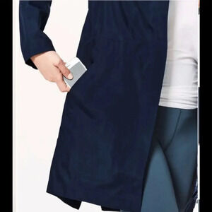 Lululemon Rain Haven Jacket in Midnight Navy size 2. Some wear, overall excellent condition no flaws. Unlined with hidden inside pockets to store essentials. Please ask any and all questions as sales are final. Thank you!