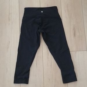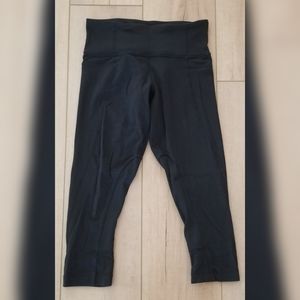 Black crops with interior textured stretch. (See inner leg picture, the material runs about the bottom 2/3 of the legging) Size 4. 20" inseam. Excellent condition. (1A)