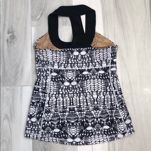 Fun, black and white design. Razorback tank with built-in bra. Great condition.