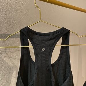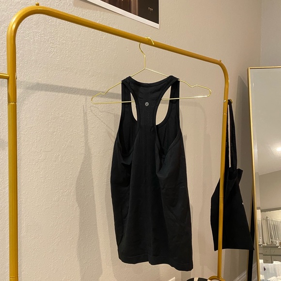 Worn black razorback top from Lululemon. Still great quality and super comfortable!