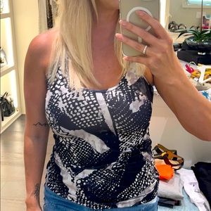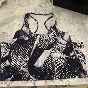 Black and white razorback Lululemon tank top, in great condition. Tag has been removed so not exactly sure about the size but I believe it is a 4.