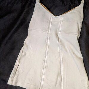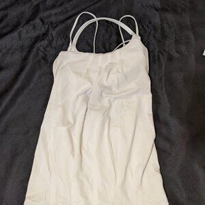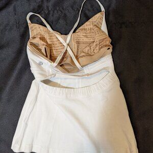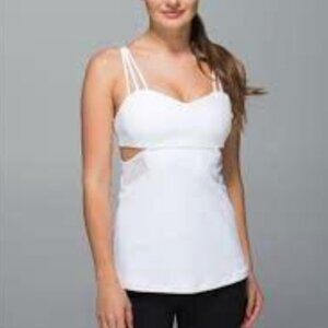 Lululemon Size 4 Reenergized 2-in-1 Tank. Alpine white. Built-in bra Made with sweat-wicking Luxtreme® fabric. Medium support Intended to provide medium support for a A/B cup. Open back provides ventilation RELAXED FIT, HIP LENGTH Layers easily and gives you room to breathe