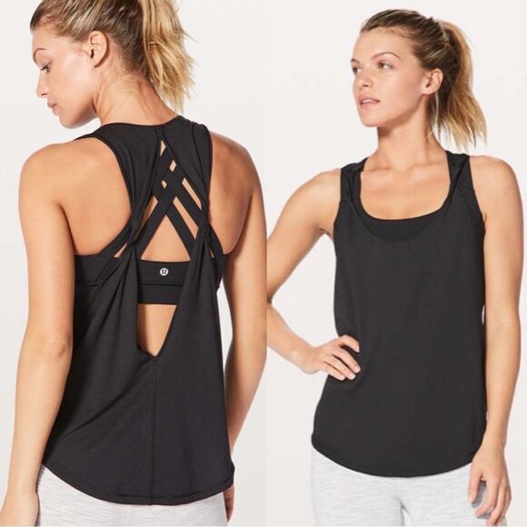 Lululemon Ready & Go tank in Black built in bra twist tank women’s size 4