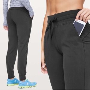From the Lululemon website: "Warm up, cool down, or kick back in these cozy, sweat-wicking joggers.