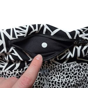 Lululemon Real Quick Tight with back zippered pocket and 24" inseam in Miss Mosaic White / Posey Black White, size 4. We designed this tight to be a sleek and easy go-to for race day training. Sweat-wicking Luxtreme fabric is four-way stretch, cool to the touch and fits like a second skin—this technical fabric offers support and smooth, low-friction performance.