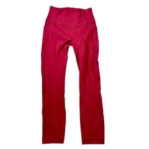 Lululemon Red Womens High-Waisted Leggings With Pockets Athleisure Size 4