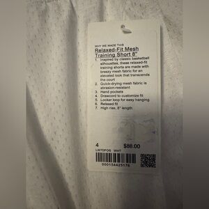 NWT Lululemon Relaxed-Fit Mesh Training Short 8" in White. Size 4. 🤍