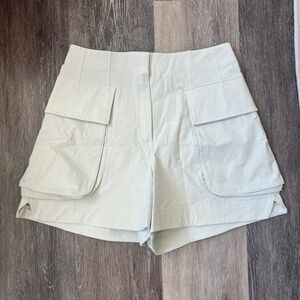 Great condition! Only worn once! Lululemon, Relaxed-Fit, Super High Rise, Cargo Short, 4", Size 4, Bone Color, Athletic, Athleisure, Fitness, Side Pocket