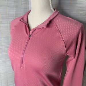 ✨ Lululemon Rest Less cropped half zip in pink. Missing the tear away tag. Has thumb slits. Refer to pit to pit measurement for size. Good used condition.