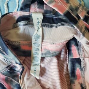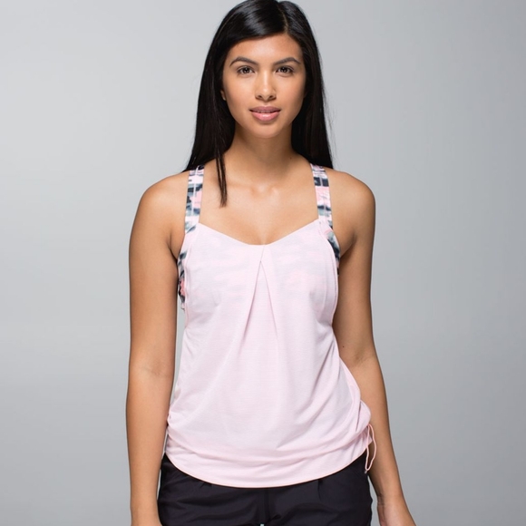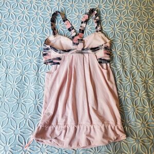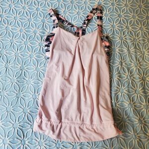 Lulu tank with Luxtreme bra and connected lightweight tank with drawcord waistband. Colors are Heathered Barely Pink and Wamo Camo. Great used condition, size 6. Pads can be included upon request.