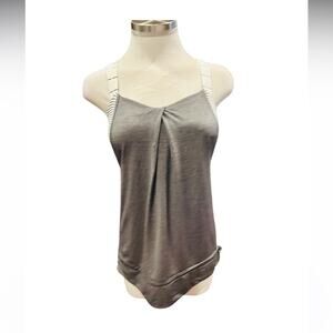 Lululemon Rest Less metallic gray tank top striped bra drawstring Size Small (4)