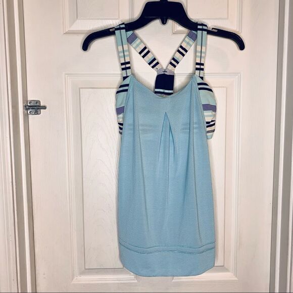 Lululemon Rest Less Blue Tank Top Athletic w/ Built In Bra Size 4