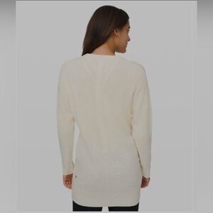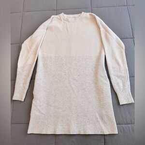 Lululemon Restful Intention Sweater in Angel Wing / Heathered Light Ivory. Beautiful, long cashmere blend sweater with pockets. Size tag is missing, PTP is 19.5 inches + shoulder to hem is 31.5 inches. I would say a size medium but please purchase using measurements. Great condition, doesn't appear to have been worn much, if at all.