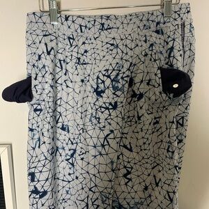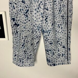 These are a blue and gray cropped legging with a crushed star pattern and size pockets. They are a size 6 in great pre owned condition. No stains or flaws.