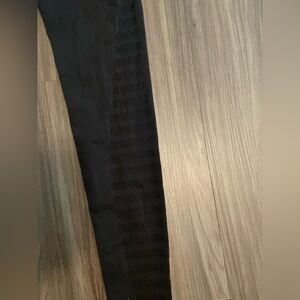 Sleek black leggings with a subtle pattern. Perfect for casual wear or workouts.