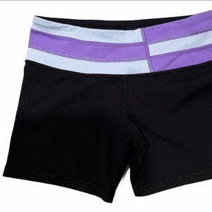 TWO (2) Yoga, Running, Volleyball, Kickball, Gym, etc., these shorts will be your go-2! The Fabric has enough stretch to feel like a second skin when in athletic mode. The band pattern contours the waistline ,or reverse for black only if you're the color matching type & your purple shoes aren't a close enough match ;)