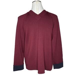 This versatile Merino Wool sweater is reversible and easy to wash. Flip up the cuffs to get the look that you like.