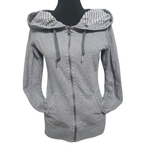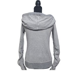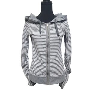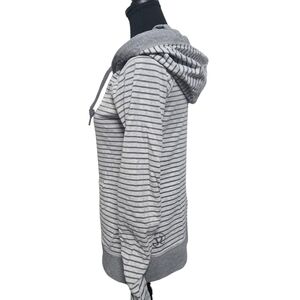 Stay cozy and stylish with this gray striped women's hoodie. Perfect for casual outings and layering.