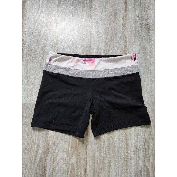 Lululemon Reversible Yoga Band Shorts Black Floral Stretch Thick Pocket Sz 8