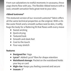 Lululemon Ribbed Contoured High-Rise Short 8" In Malibu Peach Color Women’s Size 4 Style Number: W7BTES Material: Luxtreme Pre-owned, excellent condition, like new! Bundle to save! Thank you. 💕 New to Poshmark? Get $10 Posh Credit by using my code when you sign up: MLEON19 E-0402