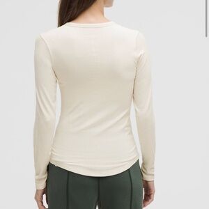 Lululemon Ribbed Hold Tight Long Sleeve-Light Ivory-Callots in pictures-PTP-13"
