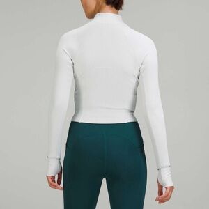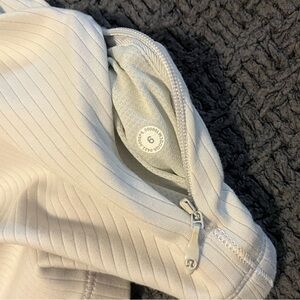 Lululemon cropped half-zip, ribbed with a sleek/soft fabric, light grey, good for running and working out, only worn a few times so great condition ✨