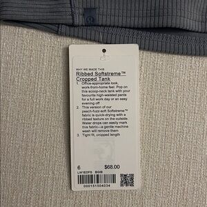 Lululemon Ribbed Softreme Cropped Tank