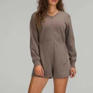 Lululemon Ribbed Softstreme Long Sleeve Front Zipper Side Pockets in Nomad Romper Size 12. No Flaws. Excellent Used Condition!