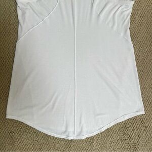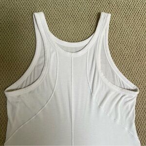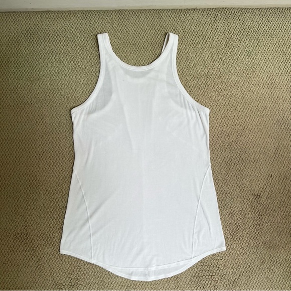 Details: white ribbed tank top from Lululemon. Athletic material with a scalloped hem.