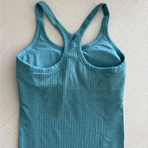 Chic ribbed tank top by Lululemon. Ideal for workouts or casual wear. Soft and comfortable fit. Seamless support. This one-and-done tank is made with a built-in bar. Has medium support.