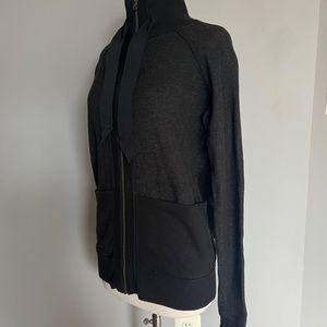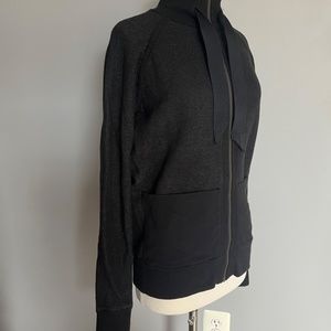Lululemon Ribbon Detail Full Zip Black Cotton Collared Popcorn Jacket Sweater