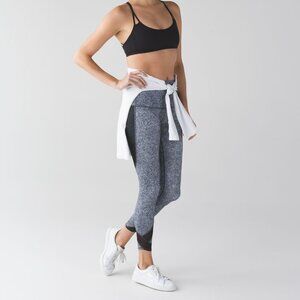 Lululemon Rio Mist White Black Tranquil Tight Size 10 - 25" Excellent Used Condition. The black mesh detailing is sewn over the fabric, and it is alone next to the skin