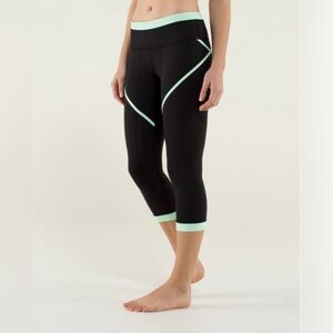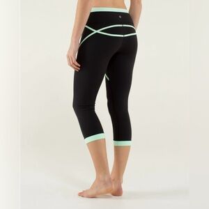 Lululemon Roll Out Crop Leggings in Black and Fresh Teal