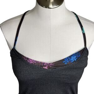 Lululemon Roll Out Tank Heathered Black Petal Pop Multi Black Women's Size 4