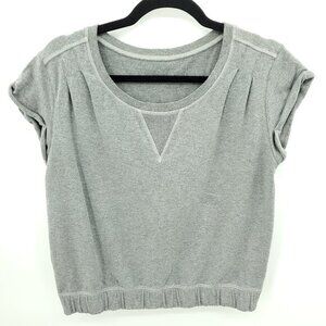 Lululemon Roll Up Crop Top 6 Heathered Mod S Grey, good to fair used condition with light to moderate wear, some interior pulls and minor texture as shown. No size tag; fits like a relaxed size small, slightly more fitted medium. See measurements below to ensure a good fit.