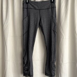Lululemon Ruched Run Tempo Crop Leggings Heather Gray Black Size 6