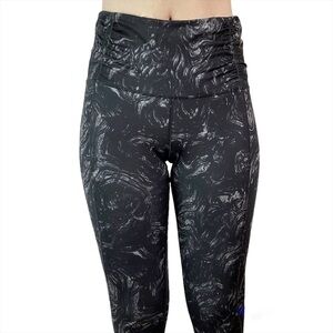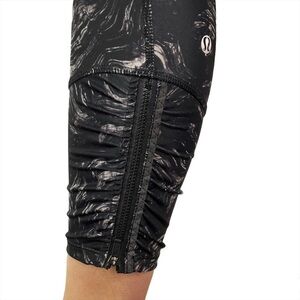 Lululemon Ruched Zip Leg Swirl Print Black 7/8 Legging Tights Sz 6