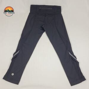 Lululemon ruffle reflective stripe black leggings, women's size 2. Designed for yoga, dance, gym, and lounge.