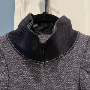 This is a gem of a running top. It has a pocket and cuffins and a zipper and it’s super soft Rulu fabric. It’s in very good condition though there might be a slight snag in the fabric. It’s hard to tell in this somewhat marled/boucle-like version of Rulu.