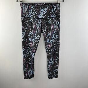 Lululemon Run Top Speed Crop Leggings Floral Sport Blue Multi Luxtreme Mid-Rise