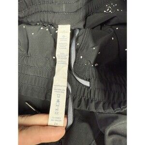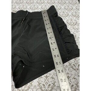 Nice pair of Lululemon athletic shorts that are reversible. Plain black on one side and patterned on the other. No stains or issues. See pictures for measurements.