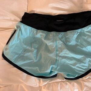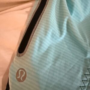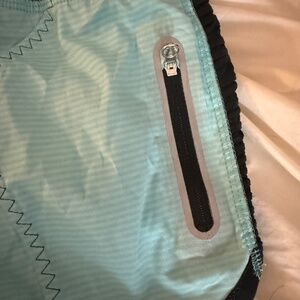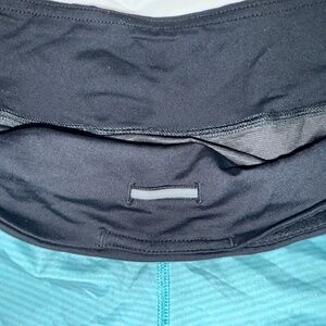 Lululemon Run: Bright At Night Aqua Tonka Stripe & Black Athletic Shorts Size 6