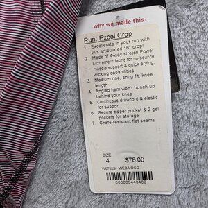Lululemon Run Excel Crop Pants Womens 4 Pink Black Stripe Luxtreme Gel Pockets