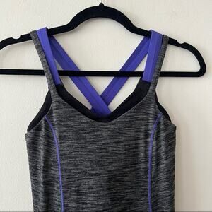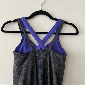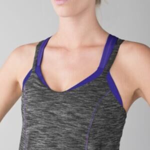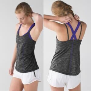 Lululemon Run For Gold Layered Tank Top in Heathered Black / Iris Flower