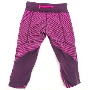 Lululemon Run For Your Life Crop Pants Womens 6 Hyper Stripe Raspberry Glo Light