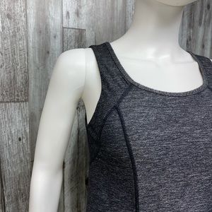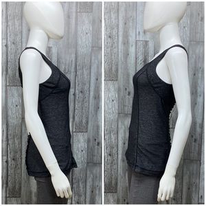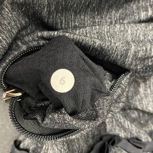 Lululemon Run Free Ruffle Back Tank. Size 6. Grey with grey/black ruffle down back and hip zipper pocket with metal LL zipper pull. Approx 24” long, 14” armpit to armpit. EUC! Item #722