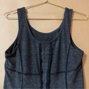 Lululemon Run Free Tank Heathered Black Scoop Neck Ruffle Back Tank Top Size 8